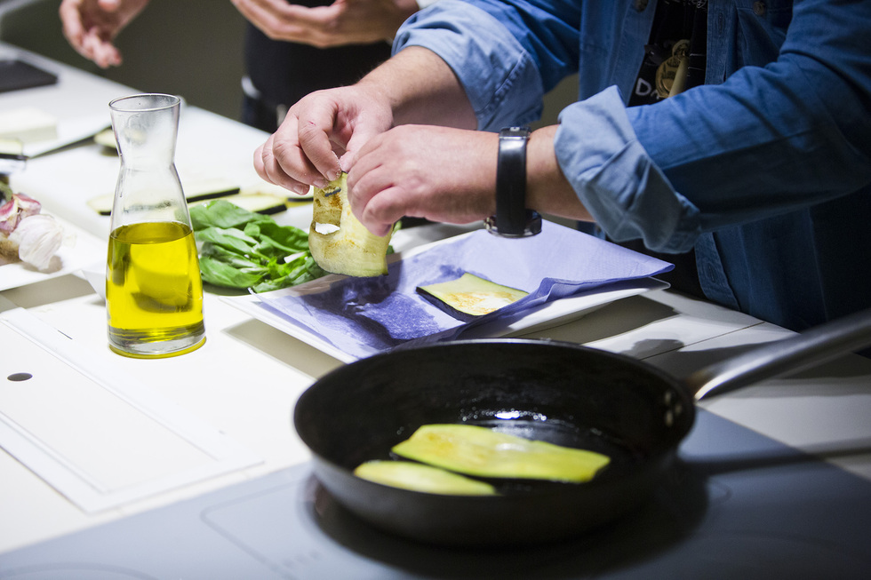 Desde San Petersburgo importó la idea de su receta: berenjenas rellenas de tomate, queso feta, albahaca y un toque de chile “para dar un poco de alegría”.