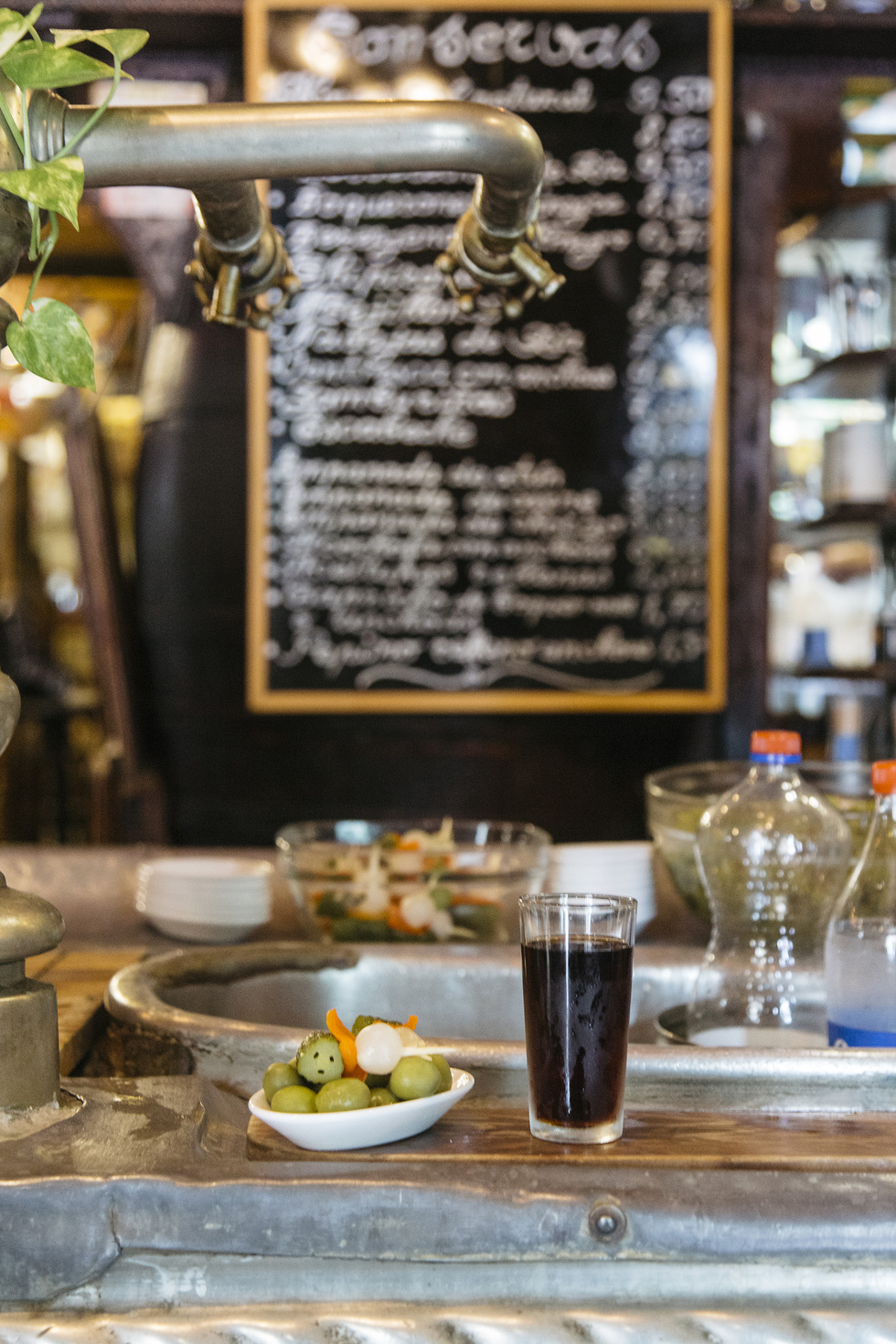 MARTA ES UNA psicóloga madrileña de 26 años que está a punto de probar el vermú por primera vez. Tras un pequeño sorbo, arruga el gesto. “¡Es amargo!”. Mediodía de un domingo de otoño. Marta viste sudadera y vaqueros. Nada que ver con la imagen que durante décadas ha estado asociada a los habituales de la hora del vermú. Después de un segundo trago, parece que le ha gustado esta bebida. Junto a ella, su amigo Jaime, informático de 28 años, con barba tupida y un aro en la oreja, cuenta que él adoptó esta costumbre el año pasado en Barcelona. La tarde transcurre bulliciosa en los bares del madrileño Mercado de San Fernando. La concurrencia está formada por diversas familias, parejas mayores y bastantes grupos de jóvenes. Muchos consumen cerveza, vino y sidra. En el bar donde Marta y Jaime se han apostado predomina el vermú. En los últimos cinco años ha vuelto a conquistar las barras.