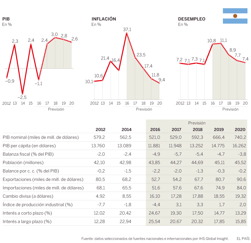 Los indicadores económicos de Argentina muestran la difícil situación que atraviesa el país aunque las perspectivas a corto y medio plazo son optimistas.