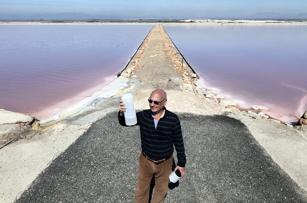 El microbiólogo, nacido en Elche en 1963, pasea entre el carrizo de las salinas de Santa Pola, flanqueado por chorlitejos patinegros, aguiluchos laguneros y flamencos. Es un paraje extraño, presidido por la torre vigía del Tamarit, levantada en el siglo XVI. Sobre la atalaya, los centinelas del rey Felipe II encendían antorchas de alarma si avistaban “moros en la costa”. Hoy, la única presencia humana es la de los trabajadores de Bras del Port, una compañía salinera que desde 1900 dirige el agua del mar por un circuito de balsas para así aumentar la concentración en sales que se evaporan gracias al efecto del viento y el sol. Su producción media diaria alcanza las 4.000 toneladas de sal.