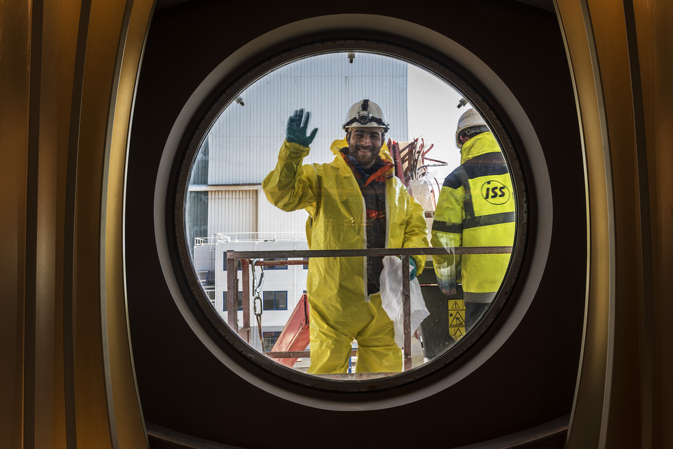El pistoletazo de salida para empezar a construir fue en abril de 2015, cuando se realizó el primer corte de acero. Hicieron falta unas 35.000 toneladas para levantar el MSC Meraviglia. Solo el casco tiene más de 300.000 piezas que se fueron ensamblando hasta dar forma al buque. El equipamiento a bordo comenzó con la instalación de las 2.244 cabinas —previamente fabricadas—, que se van encajando con ayuda de varias grúas. “Como si se tratara de un Tetrix”, explica Lagrée. El barco flotó por primera vez en septiembre de 2016. “Es uno de los días más emocionantes”, dice este padre de familia natural de Saint-Nazaire, una ciudad de unos 68.000 habitantes a una hora en coche de Nantes. La localidad, puerto base de los submarinos nazis, fue bombardeada en 1943 por los Aliados y tuvo que ser completamente reconstruida después de la Segunda Guerra Mundial. Aquí la actividad naviera sigue siendo uno de los símbolos del orgullo industrial francés y da trabajo a casi 7.000 personas (entre el personal fijo y el subcontratado). Desde 2008, el astillero ha pertenecido al grupo surcoreano STX, que, después de declararse en bancarrota y despertar el fantasma de la regresión económica en la zona, se ha visto forzado a vender. El pasado abril, la naviera italiana Fincantieri, otro de los grandes constructores de barcos de crucero del mundo (todos ellos afincados en Europa), llegó a un acuerdo de compra. El Gobierno francés, con el 33% de las acciones del astillero, aprobó la operación. Pero Emmanuel Macron pidió después renegociar el trato. Algunas voces apuntan a que el presidente no veía con buenos ojos que una de las joyas de la costa atlántica acabara en manos italianas, y temía por los puestos de trabajo. Una cuestión que debe resolverse cuanto antes porque Saint-Nazaire tiene que cumplir con todos sus encargos.