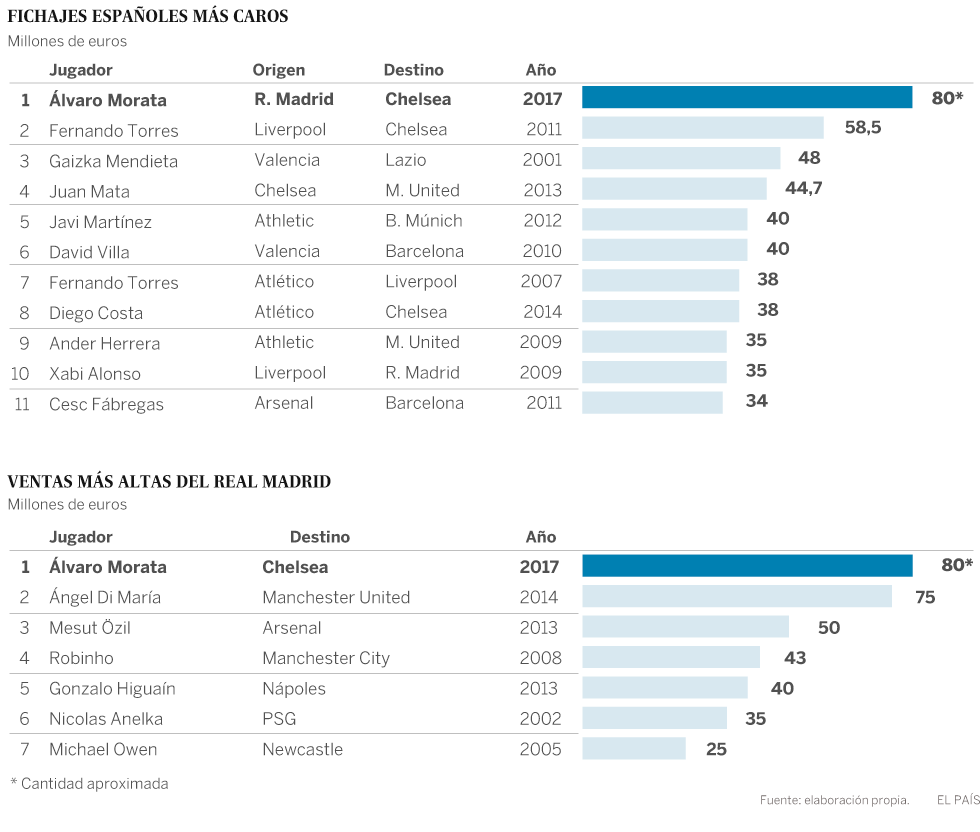 El traspaso de Morata al Chelsea se convierte en el fichaje de un jugador español más caro de la historia, cerca de los 80 millones de euros