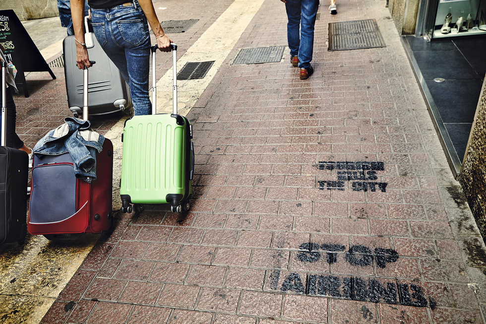 No es un asunto pacífico entre el vecindario ni entre la ciudadanía. Las continuas idas y venidas de inquilinos en estado de ánimo vacacional chocan a menudo, y frontalmente, con la tranquilidad y seguridad que reclaman los residentes permanentes. “Sí que dan guerra, sí. El otro día, sin ir más lejos, unos alemanes subieron a la terraza por la noche con sillas a montar su fiesta”, indica Francisco Aguilar, presidente de la comunidad de vecinos del número 5 de la calle de Cervantes en Palma de Mallorca. “Alquilan habitaciones pero no pagan impuestos. Los vecinos asistimos a un movimiento continuo de gentes con otro modo de vida”, apunta Antonia Pascual, socióloga, vecina del mismo bloque. “Tuvimos que darle un serio aviso a uno de nuestros vecinos por los escándalos que montaban sus inquilinos”, abunda un taxista. De ahí, este mensaje: “Queridos visitantes: Os hemos abierto nuestras casas. Al principio, os comportabais, pero enseguida habéis ocupado el salón, hacéis fiestas en la cocina y estáis meando desde el balcón. Ya no sois bienvenidos”, publicado por el autodenominado Comando Artístico Isleño Nihilista (CAIN), un colectivo ibicenco que denuncia el incremento de la desigualdad, la privatización de las costas y el agotamiento de los acuíferos.