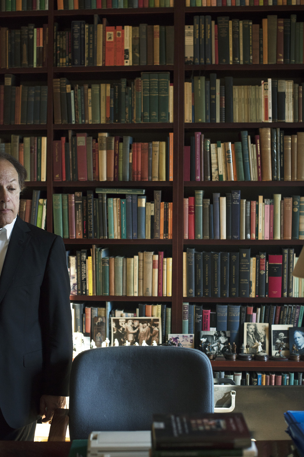 La luz solar va bajando. Comienza la sesión implacable de fotos, a la que Javier Marías se somete con cortesía. Gajes de la promoción. La entrevista continúa a salto de mata y el interrogatorio se torna por momentos estereofónico.