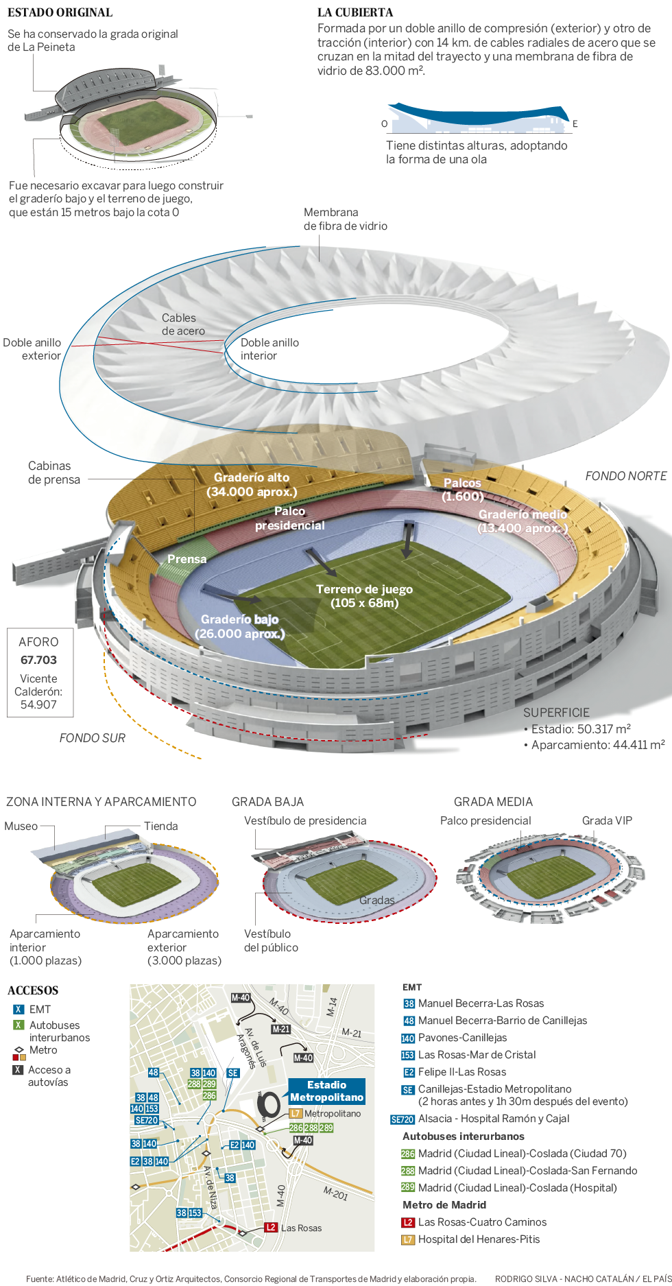 Tras seis años de obras, el equipo rojiblanco inaugura su nuevo recinto deportivo, edificado sobre La Peineta.