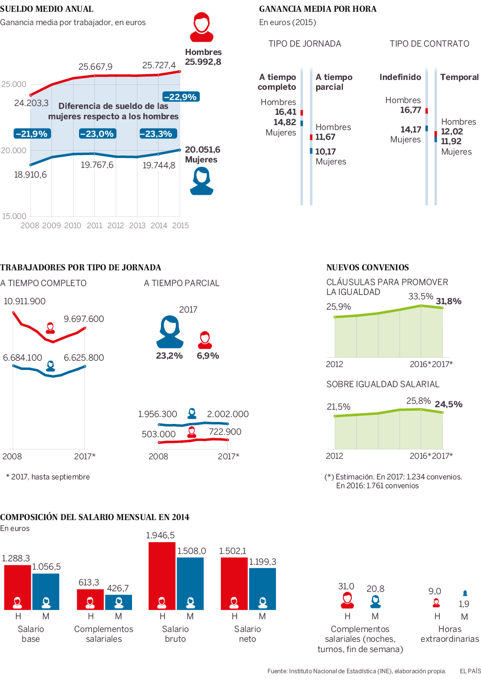 Sueldos, tipo de contratos y complementos en las nóminas de hombres y mujeres