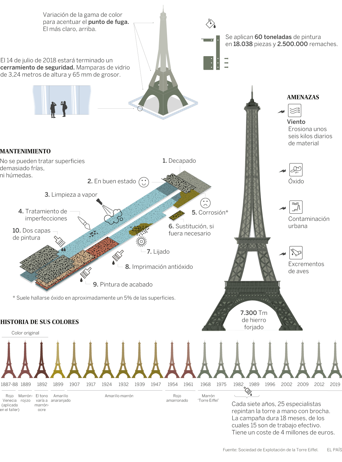 Desde marzo de 1889, esta estructura de 324 metros de altura (con antena) ha sido pintada 19 veces