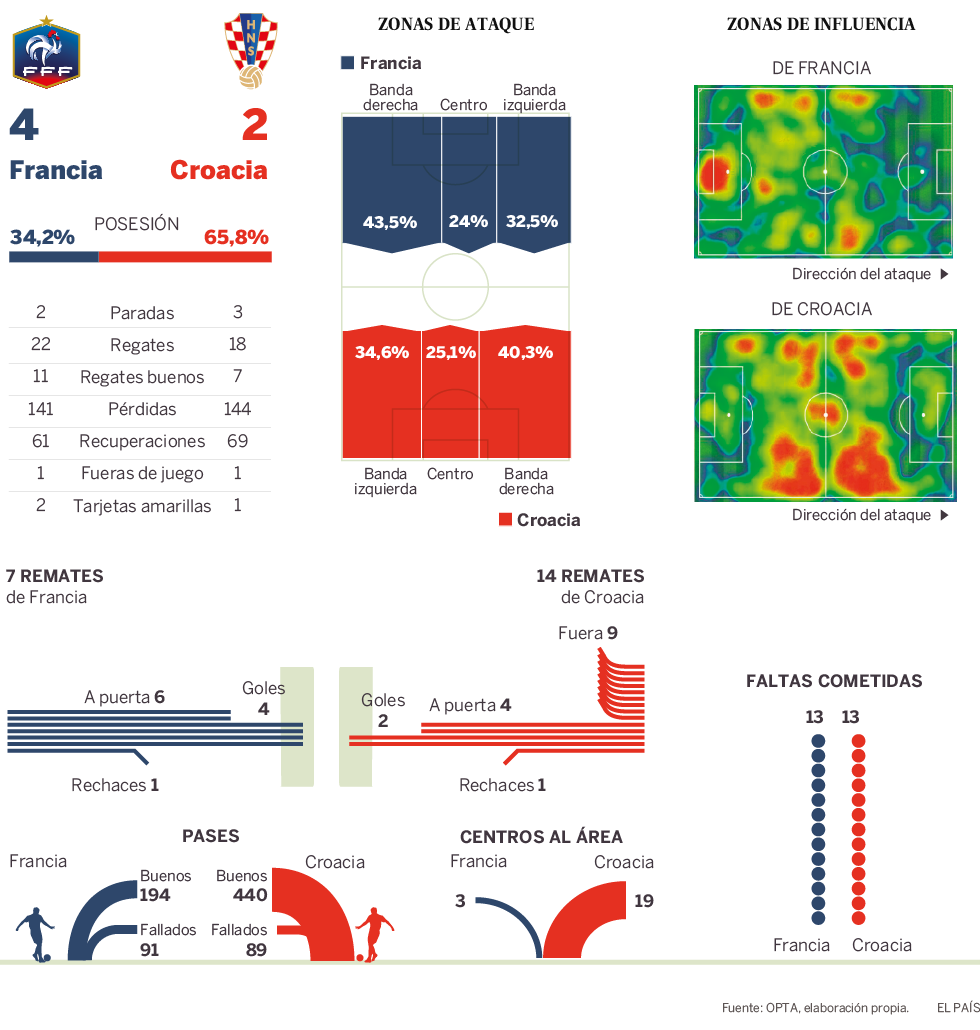 La selección francesa vence a Croacia por 4 - 2 y consigue su segunda estrella