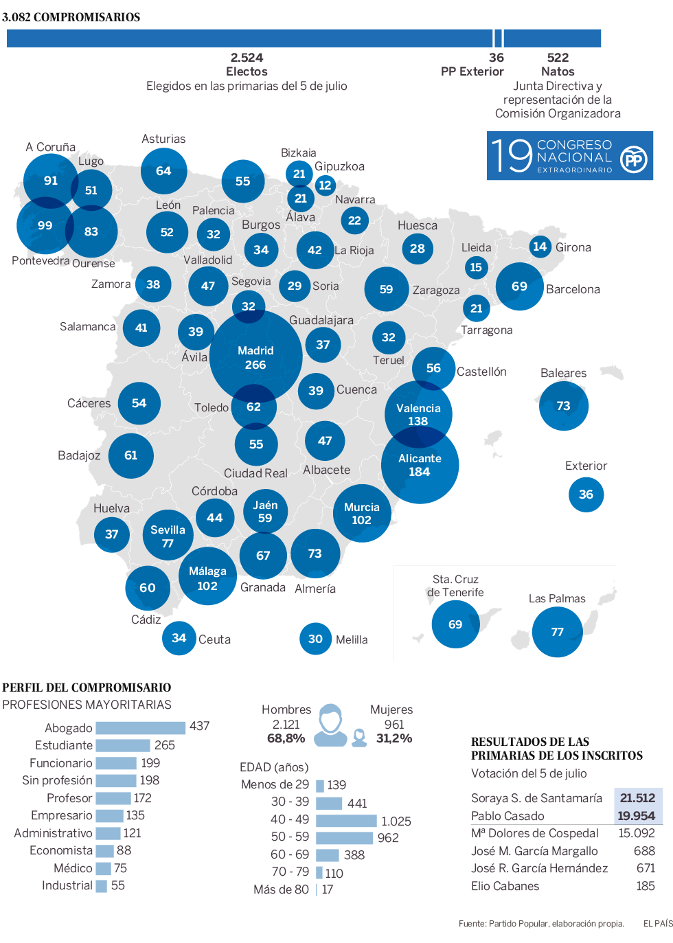 Los 3.082 compromisarios que elegirán al nuevo líder del PP