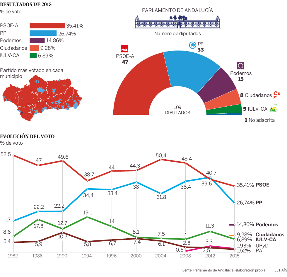 Evolución del voto en las elecciones al parlamento de Andalucía
