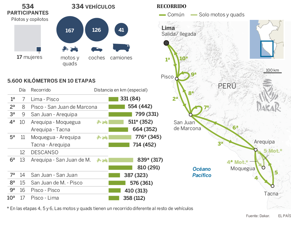 Recorrido y participantes del Rally Dakar 2019