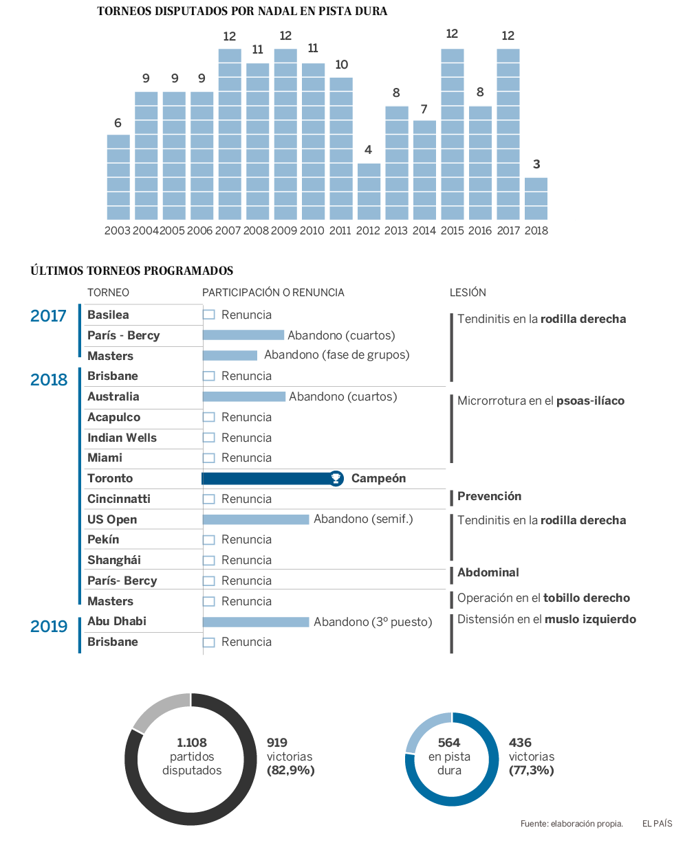 El balear sólo ha terminado sin abandonar un torneo de los últimos 17 que debería haber disputado