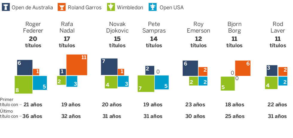 Los tenistas con más Grand Slam