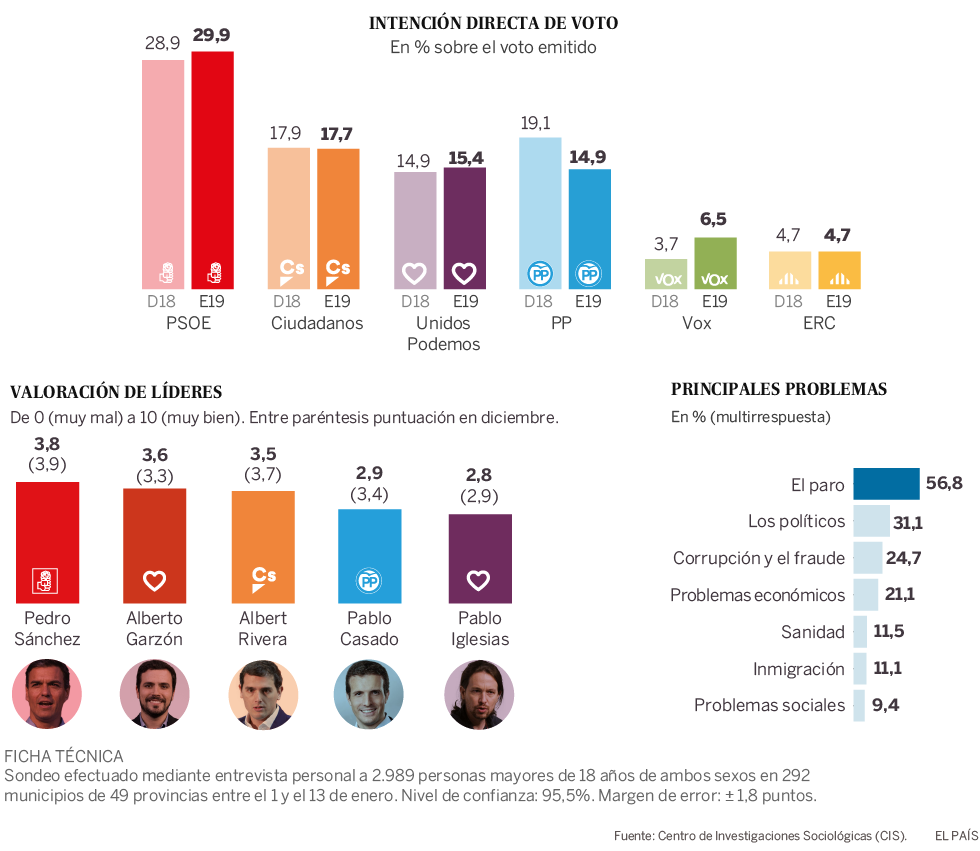 El sondeo de enero incluye la valoración de los líderes políticos