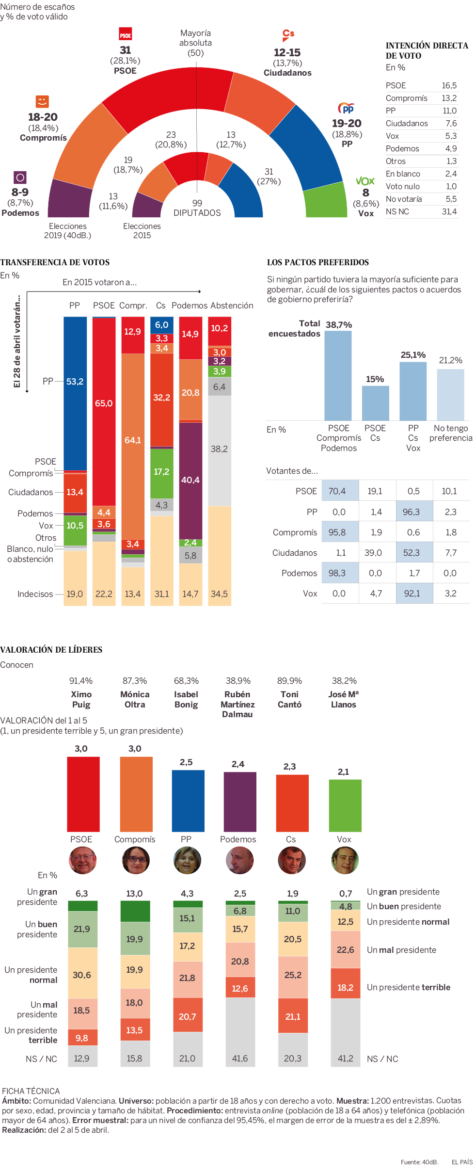 Sondeo preelectoral para las elecciones autonómicas del 28 de abril de 40dB.