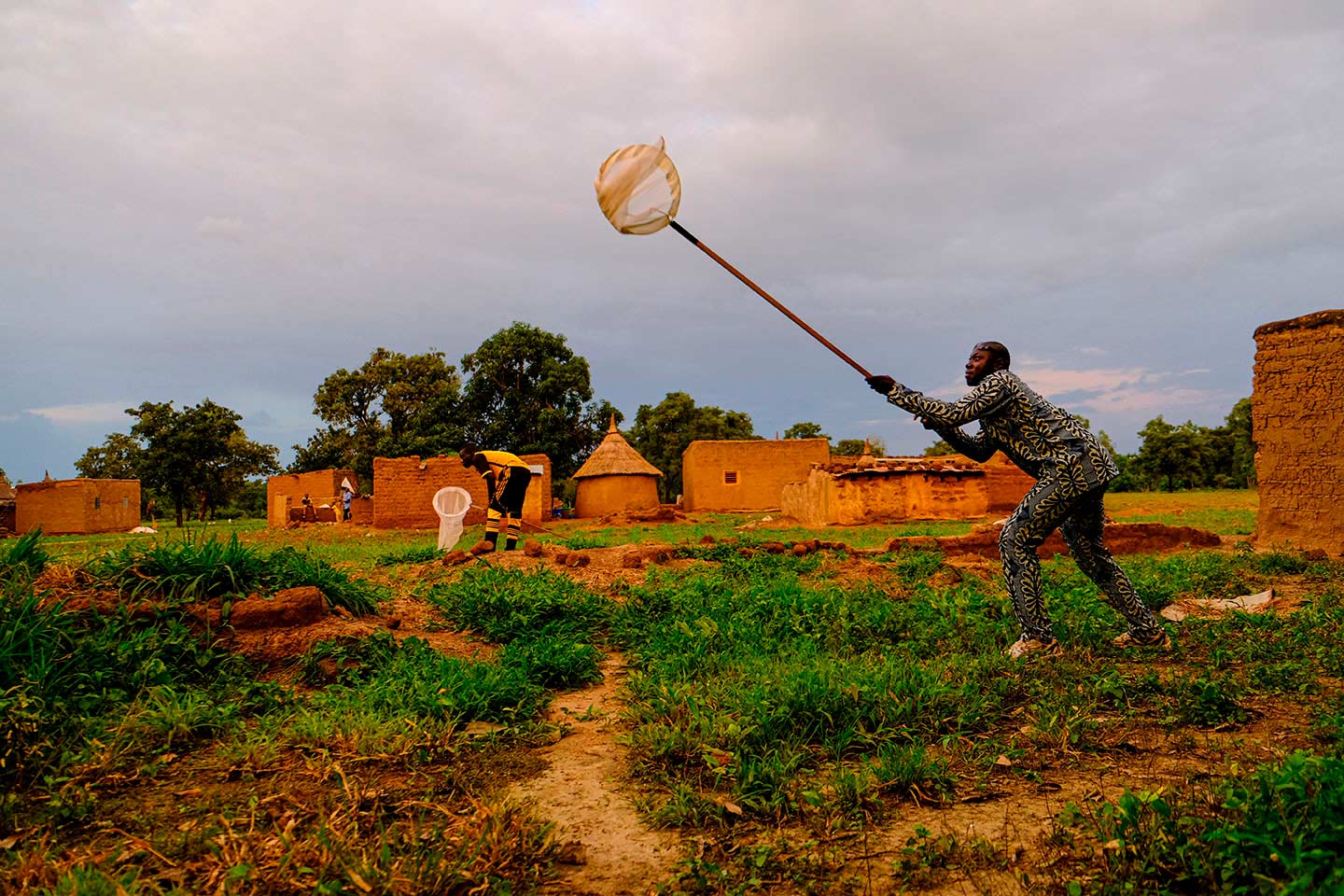 Al caer la tarde llegan al pueblo unos 15 hombres provistos de redes para cazar insectos. A las 6.45 en punto, justo antes de que caiga la noche, empiezan a agitarlas con la esperanza de atrapar alguno. "En junio, el Gobierno burkinés nos autorizó a liberar los primeros mosquitos transgénicos", cuenta Namsntougou. "Son insectos experimentales sin genética dirigida. La modificación que se les ha introducido los vuelve estériles, de manera que después del apareamiento no ponen huevos". Su presencia tendrá pocas consecuencias para la propagación de la malaria, y su función es sobre todo científica. "Queremos saber, por ejemplo, hasta dónde viajan estos insectos. También formamos a personas para que los atrapen y los analicen".