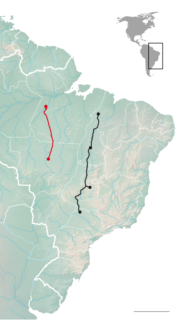 Visitamos una de sus fincas, donde varios silos almacenan el grano a la espera de que una retahíla de camiones tráiler de doble remolque cargue la producción y la lleve hacia el norte por la única carretera, la BR-163. Se trata de una vía de un carril por sentido que corta la selva brasileña hasta toparse con la orilla sur del río Tapajós, uno de los afluentes más importantes del río Amazonas. Una vez llegada allí, la soja es cargada en barcazas que surcan el Tapajós hasta su desembocadura en el Amazonas, donde la leguminosa se transfiere a buques transatlánticos que la llevan directamente a Europa y China.