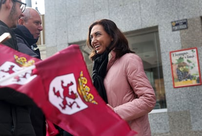 Solo un par de metros por delante, la gente se arremolina frente a la pequeña carpa morada de Unión del Pueblo Leonés (UPL), donde se reparten folletos, bolígrafos, banderas de León y las papeletas para el próximo domingo. Aquí la propaganda suena menos evanescente: “Defiende lo tuyo. Ni Valladolid ni Madrid lo harán. Cuenta con nosotros”. Se espera a la candidata, Alicia Gallego, la única mujer cabeza de lista entre la media docena de formaciones con posibilidad de representación parlamentaria en las elecciones autonómicas del próximo domingo. A unos pocos metros, junto a la carretera, con la silueta de fondo del palacio que Gaudí levantó en la localidad, la megafonía del coche de UPL proclama: “Muchos leoneses consideran deseable la autonomía propia. Pocos la consideran probable. Pero así empiezan las cosas importantes”.