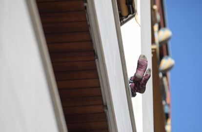 A las ocho menos cinco me he asomado y mientras esperaba para arrancar el aplauso he visto cómo se asomaban distintas cabecitas por cada ventana, tímidas al principio, pero con ganas según se incrementaba el ruido de las palmas. Una de ellas es la de Adelaida (así la supongo), una mujer mayor con mascarilla y uñas de colores que no sé cómo consigue enviarme el olor de mi abuela cuando abre la ventana. Justo a su lado dos mujeres, Laia y Sara (así las imagino), nos hacen un gesto con el pulgar hacia arriba, como cada tarde. Al final de la calle, en el balcón que hace esquina, ha salido Pepe (así le intuyo), el músico del barrio, quien con su trompeta nos hace sentir en un estadio de fútbol. Yo creo que es colchonero. Es siempre el último en irse y hoy me he quedado para aplaudirle a él, que ha dedicado unas notas a los trabajadores del Mercadona aprovechando que uno de ellos volvía a casa. Desde el primer día nos saludamos con una madre y su hija, Sol y Marta, que se abrazan mientras se asoman y sonríen cuando aplauden.