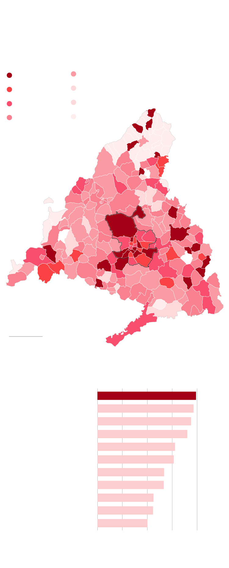 El virus se ha cebado en Madrid, pero no en todas partes por igual. No es consuelo para nadie. De norte a sur, y de este a oeste, la infección lo ha golpeado todo.
