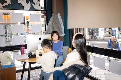 Al otro lado del tablero inmobiliario, Emilio Zhong, de 32 años, aprovecha cada minuto de su día para gestionar todas las operaciones que tiene pendientes. Zhong, conocido en la comunidad china como Zhenyu, tiene un recurso secreto frente a su escritorio: una pecera con kois -peces japoneses que representan la “prosperidad y la buena suerte” y nadan ante su mirada. Su oficina, con 14 empleados, registra una afluencia “terrible”. “El chino que vive en Usera es un perfil de clase media. Por cultura, los padres suelen ahorrar para comprarle un piso a los hijos, así que casi todos los compradores son jóvenes chinos de segunda generación y algún recién llegado que trabajará aquí o en Cobo Calleja”, observa. “Es cierto que, en lo económico, hay un dominio frente a la población latina. Durante los años de la crisis, algunas familias chinas compraron casas muy baratas y ahora tienen calles enteras. Hay alguna con más de 100 pisos alquilados, eso son entre 80 y 100.000 euros al mes”, señala.