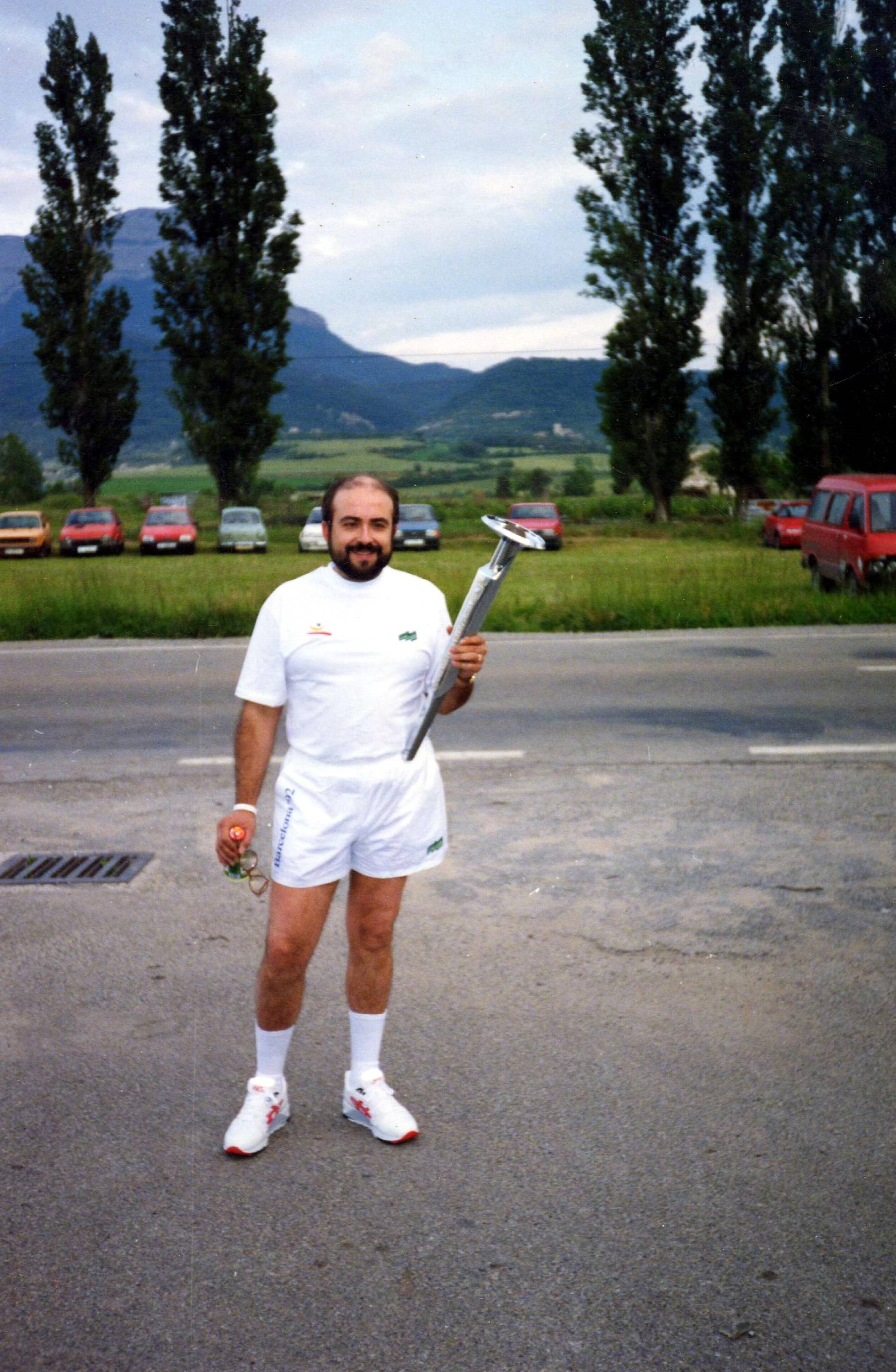 "Yo estuve trabajando para el Comité de los Juegos Olímpicos en el departamento de ticketing y el día en que tuve que hacer un tramo con la antorcha me encontraba en la Fábrica de Moneda y Timbre auditando el proceso de impresión de las entradas. Tuve que dejar Madrid coger un tren e ir hasta Zaragoza, coger otro tren hasta Jaca y allí me tocaba hacer el relevo fueron 500 metros de subida. En esos momentos yo fumaba mucho, llegué para morirme pero no quería perderme ese recuerdo y ese momento de llevar el fuego olímpico de mi ciudad”.