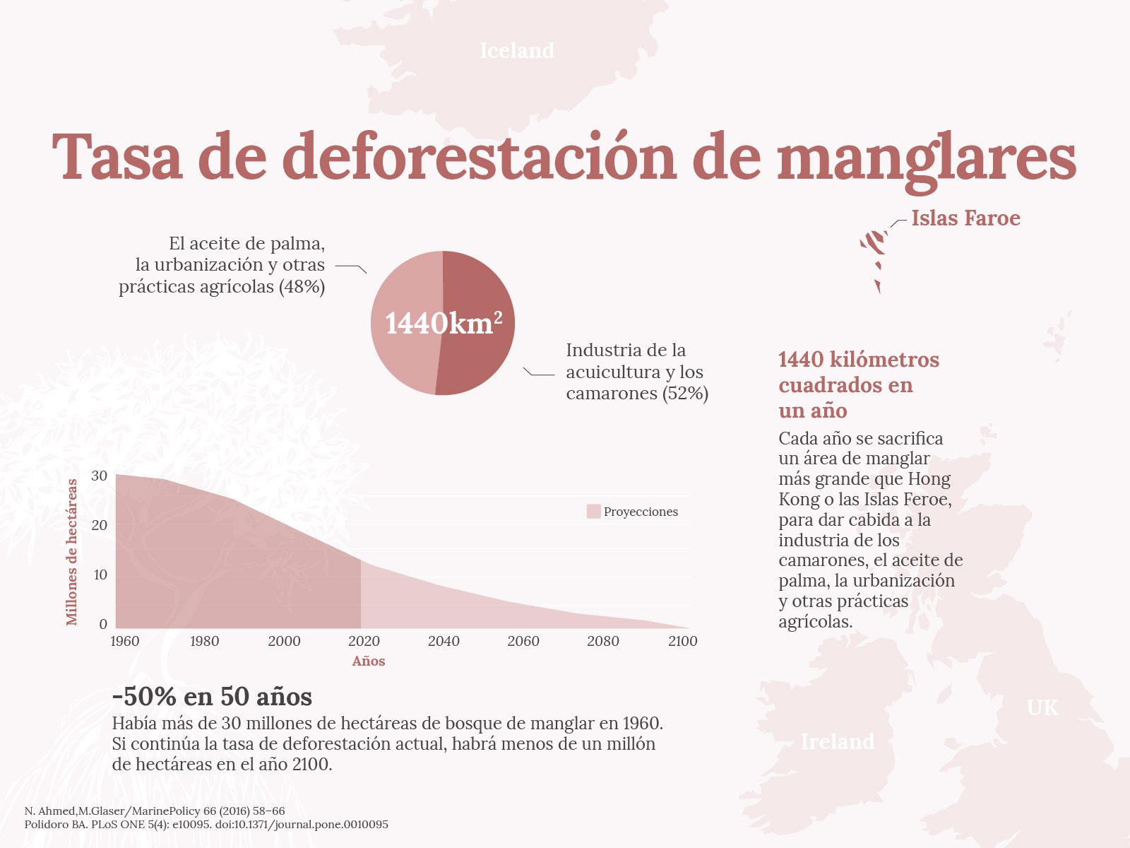 La merma de los manglares es un desastre de proporciones mundiales, desde Asia hasta América. La Tierra ha perdido más de una cuarta parte de sus bosques de mangles en menos de 50 años. Al ritmo actual de deforestación, a finales de siglo la superficie restante podría haber desaparecido.