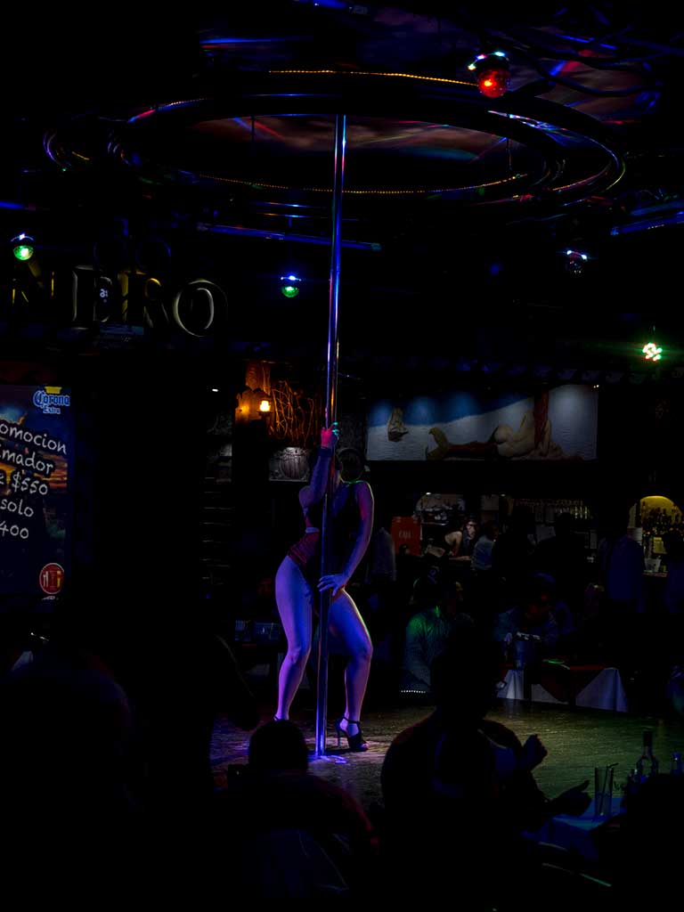 Frente a la barra de estriptis, el mismo grupo de cuarentones se ha montado la fiesta en la mesa más cercana. Uno de ellos introduce la nariz entre las nalgas que rebota, con mucho menos entusiasmo del que le gustaría, Rosel, de 21 años, de Cienfuegos (Cuba). En su brazo lleva marcados los tragos que logró que este hombre bebiera al ritmo de sus caderas, una pulsera por cada bebida. Cinco dólares de ganancia. Lo que serían dos arrimones en el parque central.