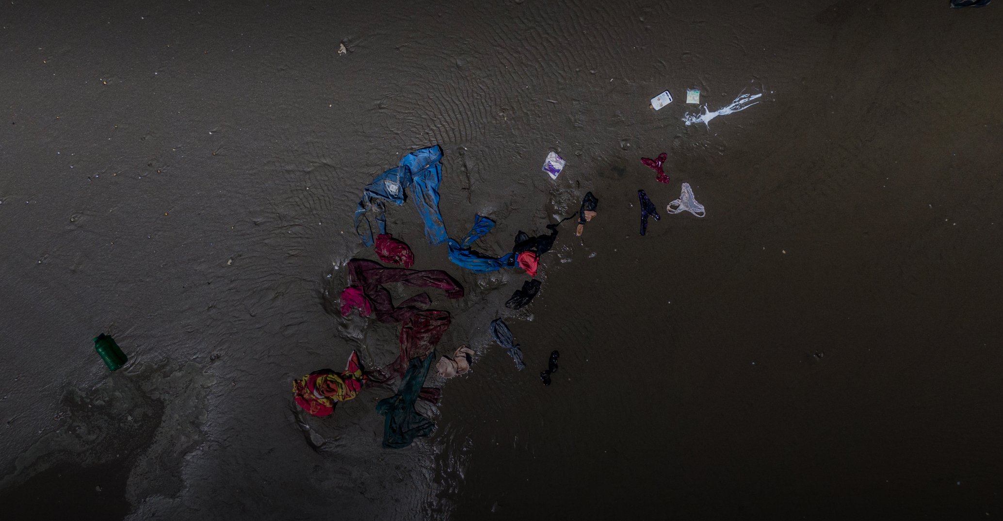 Aún encontramos ropa tirada en la arena, única evidencia del naufragio. Apunté en mi libreta: un pantalón de mujer; dos vestidos; un calcetín café; una barra de jabón; un suéter; otro pantalón de mujer; una sandalia de plástico; un pantaloncito de niño junto a una camiseta negra de similar talla; una camiseta roja, de adulto; un paquete de Kotex; una bolsita de plástico llena de granos blancos como la sal gruesa, con indicaciones médicas en francés; un bote de jabón líquido; tres bragas: una roja, una rosada y una azul; un paquete de copos de algodón; un calcetín rosado; dos sostenes: uno negro y otro rosado; un par de bragas negras; un pantaloncito azul turquesa; dos jeans de talla infantil; una camiseta rosada junto a unos pantalones y una toalla del mismo color; un sostén malva; un par de jeans color ocre. Un suéter verde; una frazada con estampados de corazones en rojo y amarillo; una botella de plástico verde; una camiseta gris de niña y unos jeans volteados, rotos; una camiseta negra con estampados en blanco de la torre Eiffel; un jersey térmico infantil. Las autoridades mexicanas dijeron que todos los sobrevivientes son adultos. Pero esto fue lo que encontré.