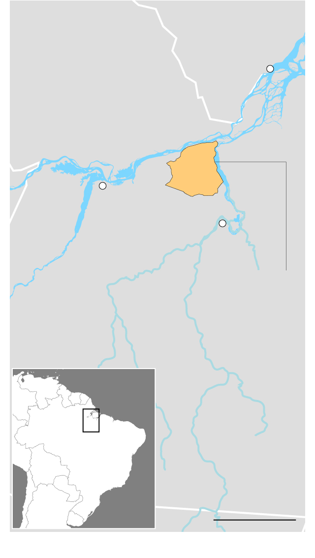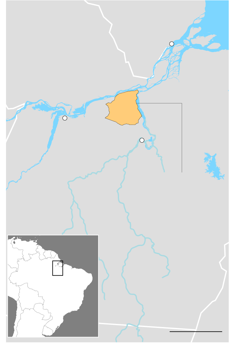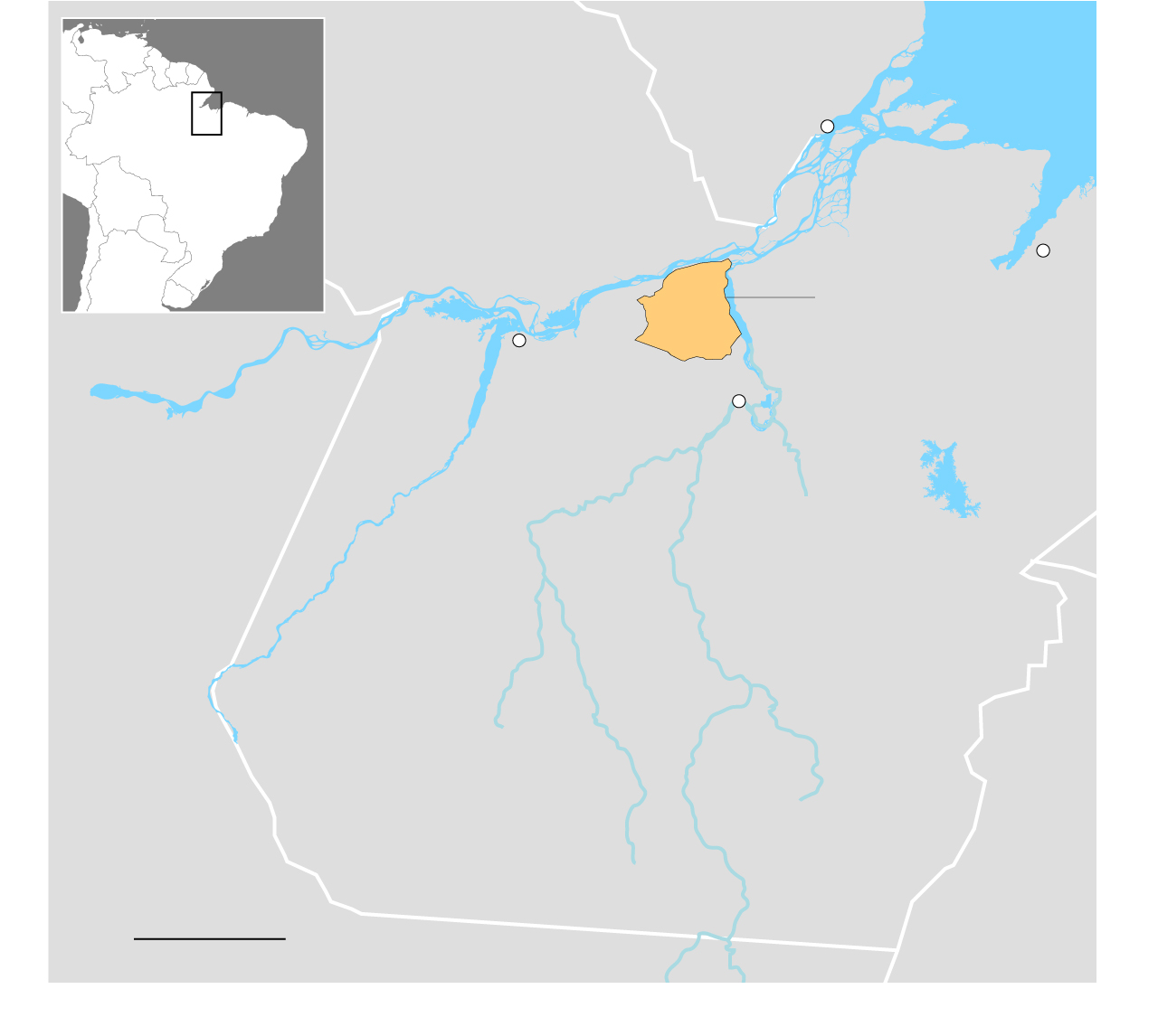 La reserva está formada por 37 comunidades con unas 13.000 personas. Delimitada por dos de los ríos más importantes del norte de Brasil, el Xingú y el Amazonas, está dividida en dos partes: la tierra firme, de donde salen la producción maderera, la extracción de frutas y de la castaña; y el campo abierto, donde se crían los búfalos, los cerdos y el pescado.