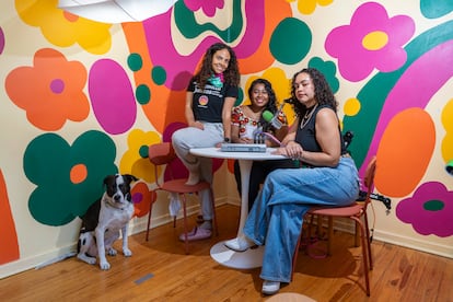 Llegaron por rutas distintas, pero coincidieron en la misma trinchera: Afrochingonas, el podcast que fundaron en 2020. La semilla se plantó en plena pandemia de covid-19. Con el mundo en pausa, Angola, de 35 años, y Figueroa, de 33, hablaban por teléfono todos los días. Sus conversaciones iban de lo cotidiano —un simple “¿qué desayunaste?”— a la profundidad de compartir cómo el racismo había moldeado sus cuerpos, sus vidas, sus silencios. Al otro lado de la línea, casi siempre como oyente involuntario, estaba Balam, pareja de Figueroa. Una noche, él soñó que aquellas charlas entre amigas tenían micrófonos y audiencia. El inconsciente reveló lo evidente: esa complicidad íntima podía transformarse en eco colectivo. Estrada, de 29 años, se sumó y así nació un proyecto para desmontar el racismo con la convicción de que “solas somos semillas, juntas campo florido”.