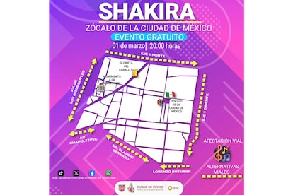 La voz de Shakira retumbará en el Zócalo de Ciudad de México, la principal plaza pública del país. La cantante colombiana ofrecerá un concierto gratuito este domingo 1 de marzo en la Plaza de la Constitución, a partir de las 20.00 horas. Ante la expectativa de una convocatoria multitudinaria, la administración de Clara Brugada ha informado que en las calles aledañas se instalarán al menos 24 pantallas para transmitir el espectáculo y ampliar la visibilidad más allá de la plancha central. Además, se habilitarán 12 módulos de atención para brindar apoyo en materia de seguridad y salud, así como para la localización de personas extraviadas.
