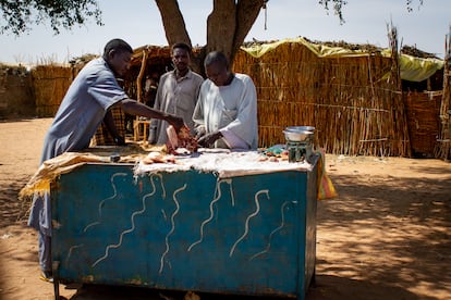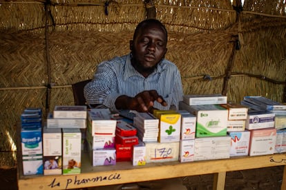 La economía informal no se limita a los bienes visibles. También circula el dinero. En ausencia de bancos accesibles, han proliferado los sistemas de transferencia informal, gestionados por intermediarios que operan con teléfonos móviles y aplicaciones. “Si quieres enviar dinero, ellos usan una cuenta bancaria y un teléfono”, explica Adoulbagi Segery, un farmacéutico sudanés que tuvo una gran botica en Al Geneina y ahora regenta un puesto en Adré, apenas una mesa, una silla y una cubierta de chapa, donde revende cajas de medicamentos básicos. Con ese sistema, algunas familias envían remesas a parientes que siguen en Sudán o en otros países.