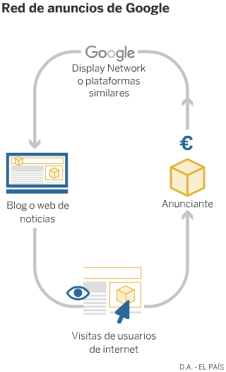 Pero este modelo de negocio ha generado el incentivo perverso de lucrarse con desinformación. Ocho de las principales páginas españolas de contenido partidista, sesgado o bulos se lucran gracias a la red de publicidad de Google, la Google Display Network, según un examen de Papallones. Son Periodista Digital, OK Diario, Esdiario, Gaceta, Caso Aislado, La Tribuna de Cartagena, Mediterráneo Digital y Digital Sevilla. Se encuentran entre los puestos de popularidad 60 y 5.001 del país, según el medidor de audiencias SimilarWeb.