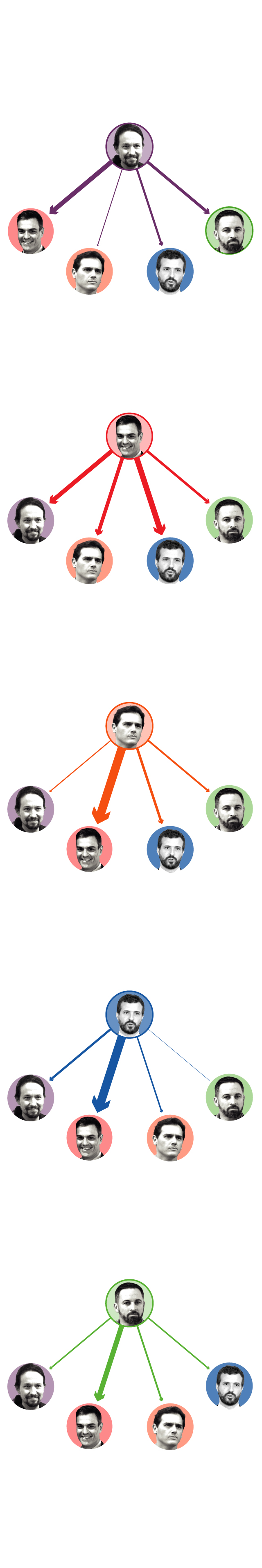 Las interpelaciones entre los protagonistas del debate, que eran cinco por primera vez, con la inclusión de Santiago Abascal, de Vox, son elocuentes.