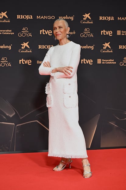 Europa Press News (Europa Press via Getty Images)Hiba Abouk, destilando 'glamour' hollywoodiense con un vestido de archivo de Carolina Herrera de 2015.Carlos Alvarez (WireImage)Rossy de Palma, con vestido con capa incorporada en tejido de lúrex plateado de seda. Un diseño de Sybilla.Europa Press News (Europa Press via Getty Images)Michelle Jenner, con un diseño estilo bailarina con una voluminosa falda de tul creado para ella por Redondo Brand, zapatos de Aquazzura y joyas de Rabat.Europa Press News (Europa Press via Getty Images)Oliver Laxe, que suma 11 nominaciones por 'Sirât', apostó por un traje de terciopelo en tono burdeos de la firma madrileña Mansolutely, en la que ya ha confiado anteriormente, con un bordado en la solapa.JOSEP LAGO (AFP via Getty Images)Anna Castillo puso una nota de color a la noche con este 'slip dress' de Redondo Brand y joyas Messika.Europa Press News (Europa Press via Getty Images)Victoria Luengo, con un diseño de Giorgio Armani y joyas de Bvlgari.Carlos Alvarez (WireImage)Ángela Cervantes, nominada a mejor actriz protagonista por 'La furia', con un modelo blanco creado para ella por Mansolutely.Europa Press News (Europa Press via Getty Images)Natalia de Molina también vistió de riguroso blanco. Su vestido con cuerpo voluminoso es de Luis Berrendero y las joyas, de Tous.Europa Press News (Europa Press via Getty Images)Alberto San Juan, nominado a mejor actor por 'La cena', se atrevió con un elegante traje blanco de Mansolutely, la firma de Álvaro Torres.Europa Press News (Europa Press via Getty Images)Amaia, que actuó en las ediciones de 2020 y 2024, esta vez acudió como invitada. Lució un sobrio vestido negro de Baro Lucas y joyas de Tous.Europa Press News (Europa Press via Getty Images)Enric Auquer, con un traje de la diseñadora española Carlota Barrera y con zapatos de Christian Louboutin.Europa Press News (Europa Press via Getty Images)Susi Sánchez destacó con este conjunto en distintas tonalidades de verde de Sybilla.Europa Press News (Europa Press via Getty Images)La pareja formada por Luis Tosar, con traje de Pedro del Hierro, y Luisa Mayol, con vestido negro de terciopelo de Michael Costello. El actor copresenta la gala con la cantante Rigoberta Bandini.Europa Press News (Europa Press via Getty Images)Rigoberta Bandini, copresentadora de la gala, a su llegada con su marido, Esteban Navarro. Ella, con un vestido de Rabanne, zapatos de Lola Cruz y joyas de La Manso, y él con un esmoquin clásico.Europa Press News (Europa Press via Getty Images)Sílvia Abril reapareció en los Goya tras su baja en las Campanadas. Para la ocasión vistió un pantalón de pata de elefante con blusa con lazada. Se trata de un diseño creado para ella por el diseñador valenciano Benavente.Europa Press News (Europa Press via Getty Images)Blanca Soroa, protagonista de 'Los domingos' y nominada a mejor actriz revelación, escogió para una noche tan especial un vestido bicolor con falda de tul de Carolina Herrera.JOSEP LAGO (AFP via Getty Images)Ana Mena, cantante y protagonista de la película 'Ídolos', eligió un vestido corte sirena y lució piezas de Joyas Antiguas Sardinero.Europa Press News (Europa Press via Getty Images)El cantante Leiva posó en la alfombra roja con un traje blanco de Pedro del Hierro y botines negros de Carmina.Europa Press News (Europa Press via Getty Images)Kira Miró apostó por los cortes estratégicos con este vestido de Ze García, zapatos de Lodi y joyas de Mumit.Europa Press News (Europa Press via Getty Images)Toni Acosta escogió este diseño con escote asimétrico de Isabel Sanchis y joyas de Mumit.Carlos Alvarez (WireImage)La modelo y presentadora Nieves Álvarez, una habitual en la ceremonia de los Goya, con vestido de encaje blanco de Juana Martín.Europa Press News (Europa Press via Getty Images)Bad Gyal, una de las encargadas de poner música a la velada, con un sensual vestido ‘nude’ con cola de Ludovic de Saint Sernin.JOSEP LAGO (AFP via Getty Images)La actriz portuguesa Maria de Medeiros, nominada a mejor actriz de reparto por 'Una quinta portuguesa', con un vestido de Véronique Leroy.Europa Press News (Europa Press via Getty Images)Almudena Amor, con un vestido lencero minimalista y satinado de Mango y el pelo suelto muy natural.Europa Press News (Europa Press via Getty Images)Mireia Oriol, con un palabra de honor rojo de archivo de Lanvin en la época en la que Alber Elbaz estaba a la cabeza de la firma, en 2012. Sus joyas, también de archivo, de Tous.Europa Press News (Europa Press via Getty Images)La televisiva Paula Vázquez, con un vestido de corte sirena azul, de Alejandro de Miguel.Europa Press News (Europa Press via Getty Images)La directora Carla Simón, que suma seis nominaciones a los Goya con 'Romería', sobria con un modelo negro de Teresa Helbig.Europa Press News (Europa Press via Getty Images)Laia Costa, ganadora del Goya a mejor actriz en 2023, con un vestido inspirado en una americana de esmoquin de Marta Martí. Lo combinó con joyas de Rabat y sandalias negras de Lola Cruz.Europa Press News (Europa Press via Getty Images)La actriz y directora Leticia Dolera con un vestido de escote de corazón de Gorof.Carlos Alvarez (WireImage)Nora Navas, nominada a mejor actriz por 'Mi amiga Eva', con un vestido rojo de manga larga y escote corazón de Rubén Hernández. Lo combinó con impresionantes joyas de Bvlgari.JOSEP LAGO (AFP via Getty Images)Elena Furiase, con vestido blanco de Andrew Pocrid y joyas de Del Páramo Vintage.Europa Press News (Europa Press via Getty Images)Nagore Aranburu no posó en la alfombra roja, pero subió al escenario a recoger el premio a mejor actriz de reparto por su papel en 'Los domingos' con este diseño de Teresa Helbig.LLUIS GENE (AFP via Getty Images)La 'influencer' italiana Chiara Ferragni, con un diseño con flor en el escote.Europa Press News (Europa Press via Getty Images)Ivana Baquero apostó por la teatralidad con este vestido con falda con vuelo de Isabe