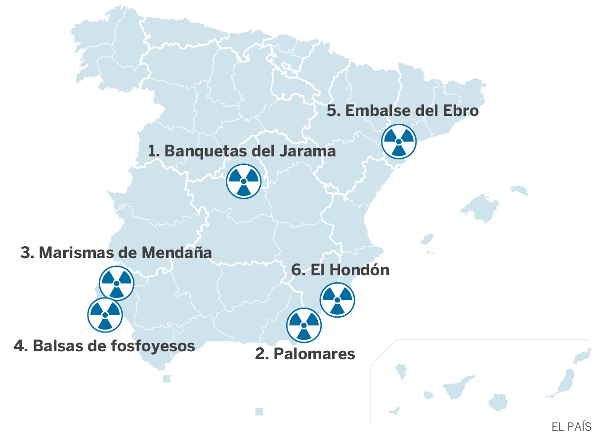 Madrid, Toledo, Tarragona, Huelva, Murcia y Almería están en el mapa de las zonas afectadas por vertidos radiactivos