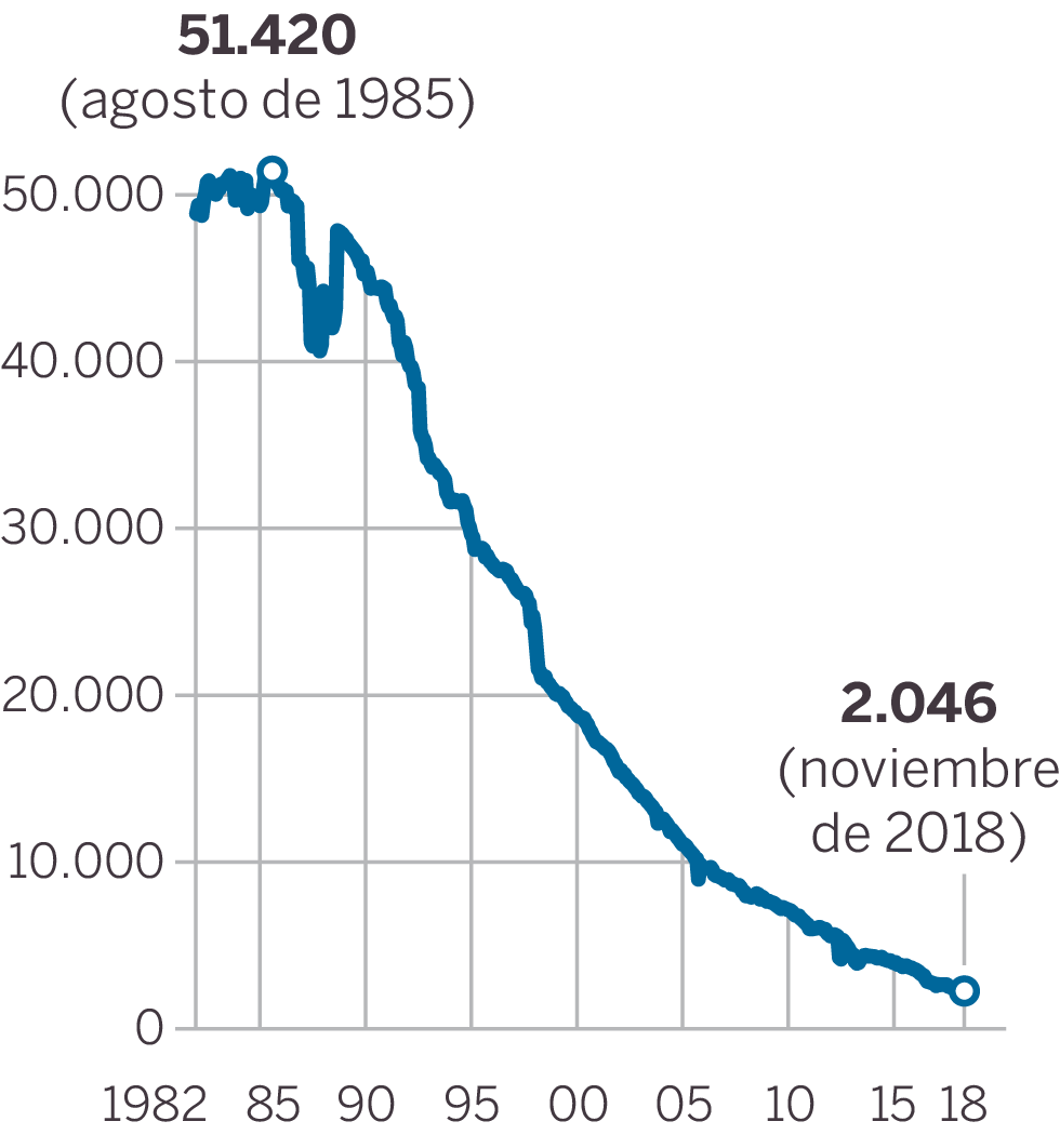 Y el fin de la minería del carbón en España llegó. El 1 de enero las 26 explotaciones de Asturias, Aragón y Castilla y León que quedaban en España –de las que ya solo 12 estaban en producción– tendrán que cerrar o devolver los más de 500 millones de euros que han recibido de ayudas públicas. A ese cierre se comprometió el Gobierno con la Comisión Europea a principios de esta década, cuando Bruselas concedió la prórroga final a una actividad económica deficitaria que lleva más de 30 años de ocaso en España. En noviembre ya solo quedaban 2.046 trabajadores adscritos al régimen especial de la minería del carbón, frente a los 51.420 que había en 1985. Y el 90% del carbón que se quema en España para producir electricidad se importa ya de otros países como Colombia o Rusia.