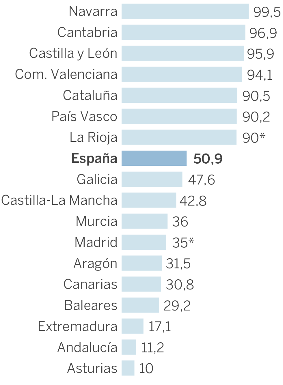 La tasa de personas que se han hecho la prueba en Navarra es del 73%; en Andalucía, del 2%
