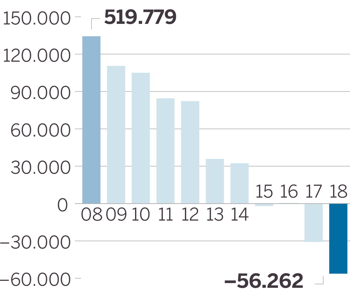 El declive demográfico coincide también con la crisis económica. “Estuvimos creciendo entre 1997 y 2007. Ahora estamos en una tendencia descendente. Pese a que los niveles macroeconómicos se han recuperado, los bolsillos no lo han notado. A nivel social hay una percepción de que la crisis no ha acabado”, añade este experto.