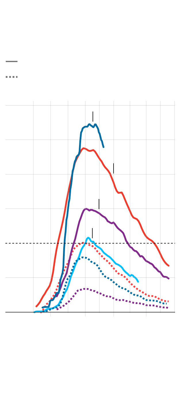 Entre finales de marzo y primeros de abril varias comunidades soportaron una presión asistencial inaudita. Entre el 23 de marzo y el 3 de abril se registraron en España más de 2.000 hospitalizaciones diarias por covid-19, con picos de hasta 3.500, y más de 500 ingresos en unidades de cuidados intensivos (UCI). Los datos de ocupación de camas y de puestos de UCI que ha analizado Papallones, a partir de información del Ministerio de Sanidad y de las propias comunidades, muestran que Cataluña, La Rioja, País Vasco, Navarra o Aragón vivieron por esas fechas varias jornadas en las que los ingresos en cuidados intensivos fueron, de un día para otro, del 15% de las camas que tienen habitualmente. El tamaño medio de una unidad UCI en España es de entre 10 y 15 camas: en las dos semanas que desbordaron el sistema, muchos hospitales vieron llenarse estas instalaciones en un solo día.