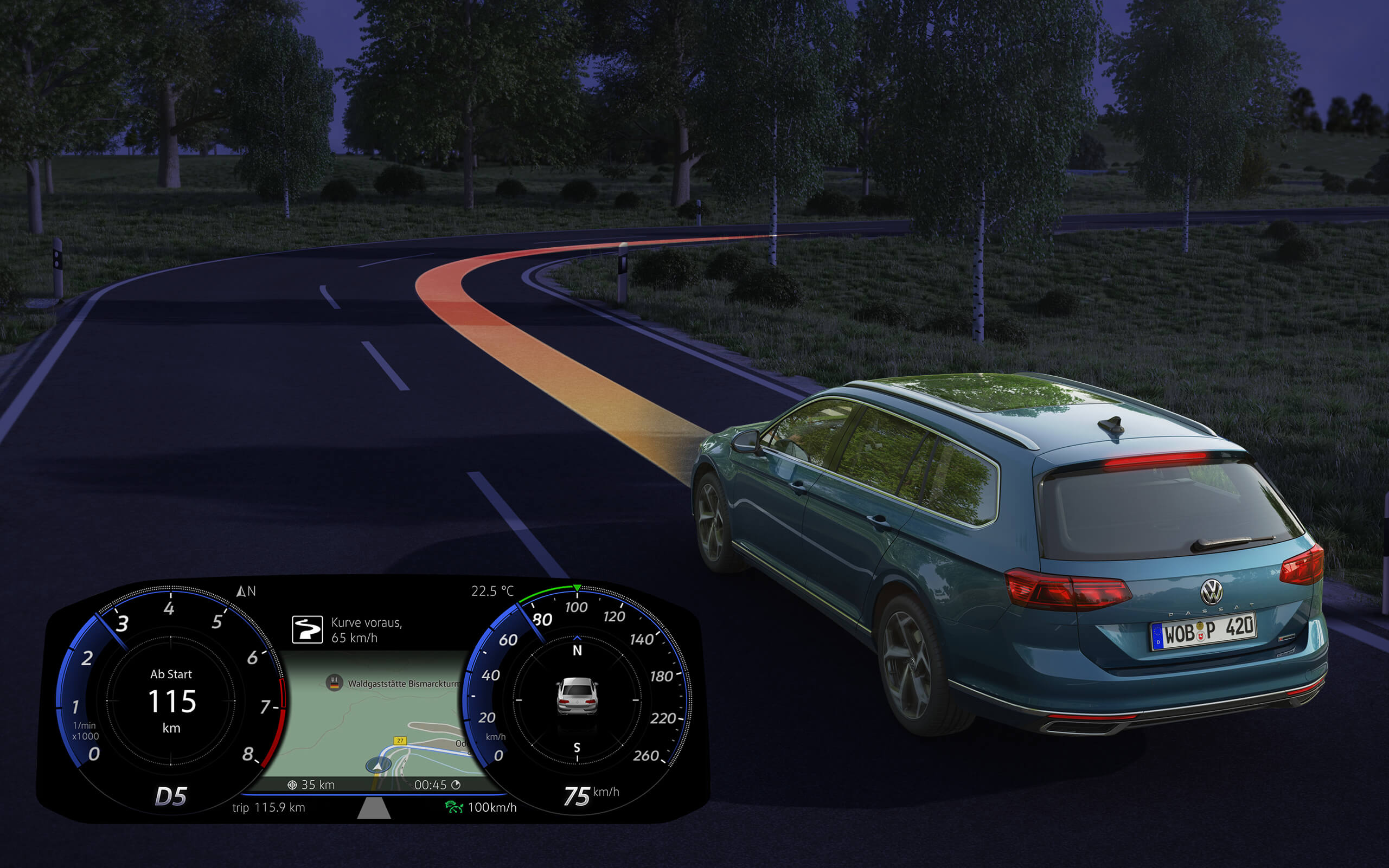 El Passat cuenta con otras tecnologías de ayuda como la alerta por presencia de vehículos en el ángulo muerto de los retrovisores (Side Assist) y el Emergency Assist, que frenará cuando no haya respuesta del conductor.