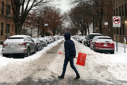 Una mujer intenta cruzar una calle nevada de Nueva York, este lunes.Seth Wenig (AP)Una pantalla informa de los vuelos cancelados, este lunes en el Aeropuerto Nacional Ronald Reagan de Washington.Julia Nikhinson (AP)Varias personas juegan en la nieve, este domingo en Filadelfia.Matt Rourke (AP)Tráfico en una calle cubierta de nieve, este lunes en Nueva York.Brendan McDermid (REUTERS)Una persona limpia de nieve una calle de Portsmouth, este lunes.Caleb Jones (AP)Los operarios retiran la nieve del Aeropuerto Nacional Ronald Reagan de Washington, este lunes.Julia Nikhinson (AP)Una persona pasea con su perro por una calle nevada de Portsmouth, este lunes.Caleb Jones (AP)Un hombre cruza una calle de Nueva York sujetando una pala, este lunes.Brendan McDermid (REUTERS)Varias personas retiran la nieve de las aceras en Brooklyn, en la ciudad de Nueva York, este domingo. Amr Alfiky (REUTERS)Vehículos quitanieve realizan labores de limpieza durante la tormenta invernal que azota Filadelfia, este domingo.Associated Press/LaPresse (APN)Un grupo de hombres ayudan a un motorista cuyo auto se quedó atascado en la nieve, este domingo en Louisville, Kentucky. Matt Stone (via REUTERS)El hielo cubre la avenida South Congress en Austin, Texas, este domingo.Austin American-Statesman/Hearst Newspapers (Austin American-Statesman via Getty Images)Un padre tira de un trineo en el que viajan sus hijos por una calle de Nueva York, este domingo. Jeenah Moon (REUTERS)Una pareja cruza el puente Rachel Carson nevado, en el centro de Pittsburgh, este domingo. Associated Press/LaPresse (APN)Personas juegan con bolas de nieve frente al Monumento Washington, este domingo en la capital estadounidense. Elizabeth Frantz (REUTERS)El hielo cubre las líneas del tendido eléctrico en Nashville, Tennessee, este domingo. Associated Press/LaPresse (APN)Unos 15.000 vuelos de aeropuertos de Estados Unidos han sido suspendidos entre el sábado y el lunes debido a la tormenta invernal, según la información de FlightAware.