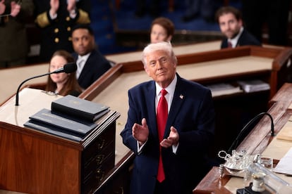 Trump dedicó buena parte del bloque de política exterior de su discurso a la operación que detuvo al presidente venezolano Nicolás Maduro el 3 de enero y la Venezuela poschavista, “nuestra nueva amiga y socia”. Se refirió a Maduro como uno de los “sicarios más siniestros”. Su desaparición de la escena ha permitido, declaró, abrir una nueva etapa en la que Estados Unidos ya ha comenzado a explotar el petróleo del país sudamericano. Y en la que los presos políticos comienzan a quedar liberados: uno de los momentos más emotivos de la noche ha sido la comparecencia por sorpresa del excandidato presidencial y ex preso político Enrique Márquez.