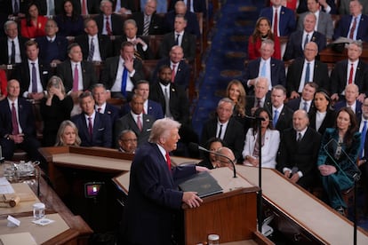 Donald Trump ofreció este martes en el Capitolio el primer discurso sobre el estado de la Unión de su segunda presidencia, durante el que describió un país que “no puede dejar de ganar“ en lo que pudo calificarse como un intento de recuperar el control del relato cuando faltan algo menos de nueve meses para las elecciones legislativas de medio mandato. En ellas, se renueva la totalidad de la Cámara de Representantes y un tercio del Senado y las encuestas no son buenas para los republicanos. A continuación, las claves de una intervención que estuvo llena de la retórica, reñida con la verdad, del presiente de Estados Unidos, así como de los ataques a sus rivales demócratas.